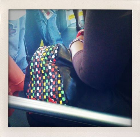 I’m standing at the bus stop, finally picking up my bags to get on the arriving bus. When this man, dressed in a nice suit with a green tie and a hair line so far back from his forehead and cut straight across the middle of his head, I’m not sure if he’s going bald or if he cuts it that way, says, “It’s hot. I’m in a suit and you’re in a sweater but we both look good.” He tells me he’s going to the Body Shop, happily chiming that “it’s a strip club.” When the bus arrives, he embarrassingly moves in front of the line and motions for me to step in front of him. I think ‘uh-oh, this guy’s trouble,’ and my face puckers in disgust; a look I don’t really emerge from until he says goodbye. I manage to score a seat next to a woman who is sleeping, so he is forced to sit diagonally from me.