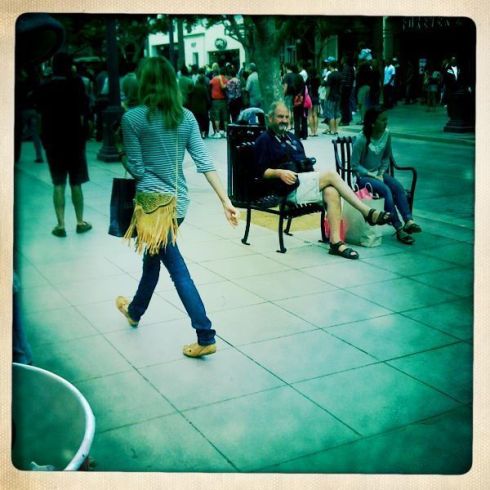 There are two men in front of me slowly swaggering and bantering back and forth with each other. I know this could mean trouble when they slowly turn and look my direction as I’m pacing towards them in a hurry to catch my bus. The one on my left quickly says hello and cocks his arm out in a ‘take my arm’ manner. I slow down trying to figure out how to get around them when I realize they’re going exactly the same way I am. So they keep walking with me and finally I take out my earphones because they’re trying to talk to me. Shortly, we exchange names and a polite but verging on the too personal conversation begins. One of the men lights a cigarette and asks me if my job is boring (‘cause he can tell I hate it he says – though I haven’t said a word, I’m just wearing a suit), how long I’ve been in the city, that he knows plenty of clubs around town and lives nearby. He is a jewelry designer and his friend is basically a drifter but he works sometimes. Between the two of them they’ve lived in L.A. over forty years. He tells me that he and his friend could take me out, we’d have some fun. That he loves beautiful women. I change the subject and ask about restaurants. They argue about Tunisian food over Armenian, tell me good places to go eat and say that there’s not really any good Tunisian food around here, a statement his friend protests. Then finally, “you should take my number down” he says. I tell him I’m married, and he says “so am I. My wife likes pretty women.” His friend, a little miffed that I am accepting his friends’ number says, “its fine if I want Tunisian, but give it a try and you’ll be calling me instead.”
